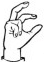 На ћирилици написано ЛАРА КУРМАЗОВИЋ састоји се из 14 слова [?]. Исписано ћириличном једноручном азбуком за глувонеме: